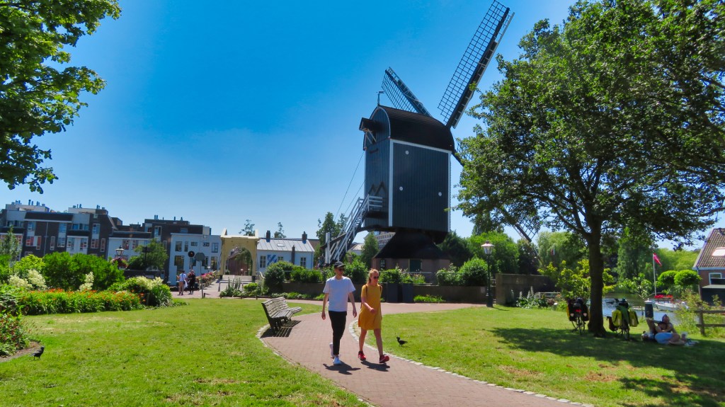 Vervolgens kom ik uit bij Molen de Valk, een indrukwekkende stellingkorenmolen uit 1743. Vroeger stonden er maar liefst 19 windmolens op de stadswallen van Leiden. De Valk is een absolute eyecatcher in de stad en staat centraal tijdens de Leidse Kermis op 3 oktober.