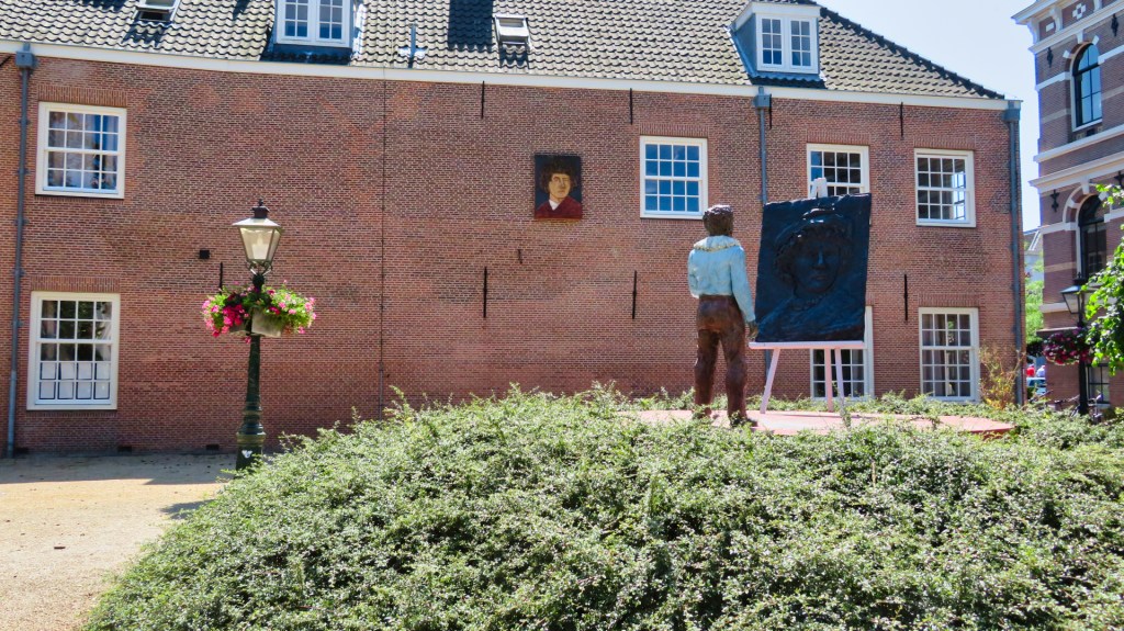 Op mijn route kom ik ook een eerbetoon tegen aan de grote meester, Rembrandt van Rijn, bij de Rembrandtplaats. Hier werd hij geboren en hoewel zijn geboortehuis plaats heeft moeten maken voor nieuwbouw, herinnert het kunstwerk van Stephan Balkenhol aan zijn aanwezigheid en zijn schildertalent.