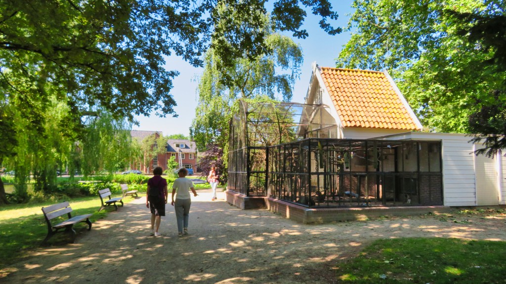 Terwijl ik verder wandel, kom ik bij het Plantsoen, een schilderachtig stadspark in Engelse landschapsstijl. Hier kun je ontsnappen aan de drukte van de stad en genieten van rust en groen om je heen. Mensen zitten op een kleedje op het gras en genieten van het park of lezen een boek. Ik passseer de schattige volière uit 1939. Door de kooien huppen zebravinkjes met hun kleine rode snaveltjes en valkparkieten met hun rode wangetjes. Net alsof ze rouge op hebben. Op de grond scharrelt een kleurrijke goudfazant.