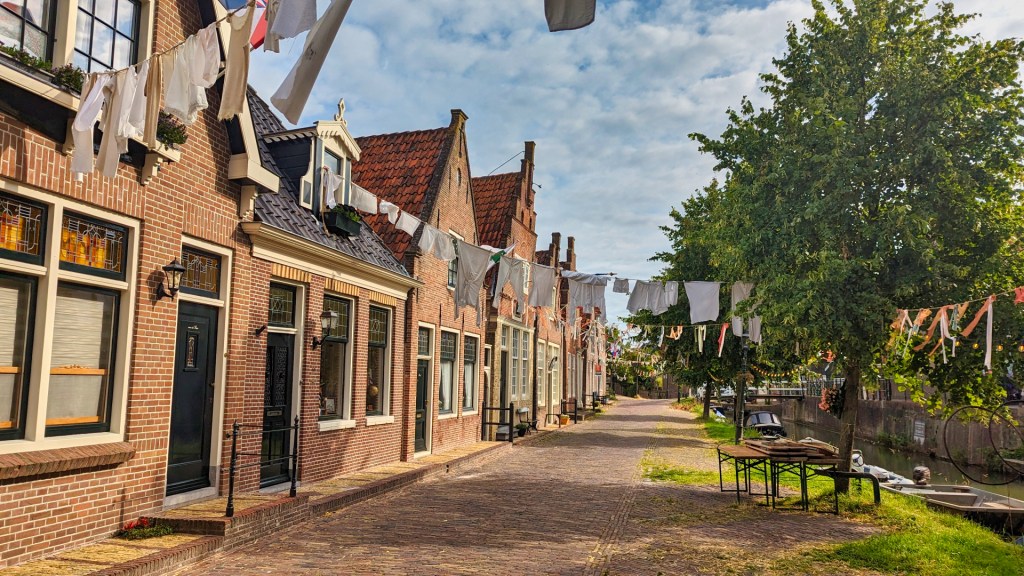 Ik wandel over de schilderachtige grachtjes, die zijn versierd met gekleurde vlaggen. Op de kade staan oude voorwerpen zoals een spinnewiel en vissersnetten. Het doet me denken aan het Zuiderzeemuseum.
