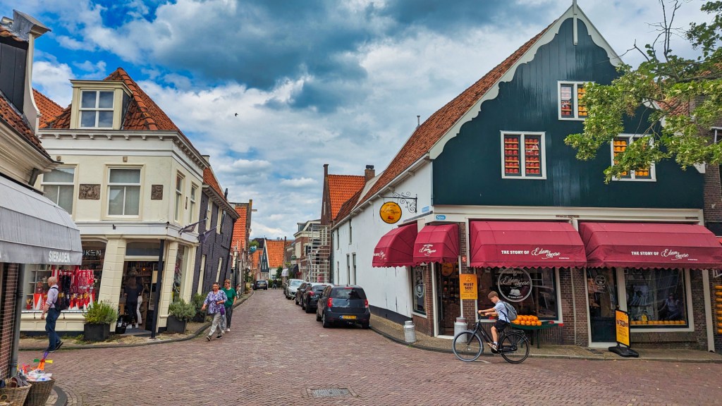 Ik sluit mijn wandeldag af in het charmante Edam, bekend om de beroemde kaasmarkt. Ik wandel door de knusse winkelstraatjes en loop even binnen bij een kaaswinkel.