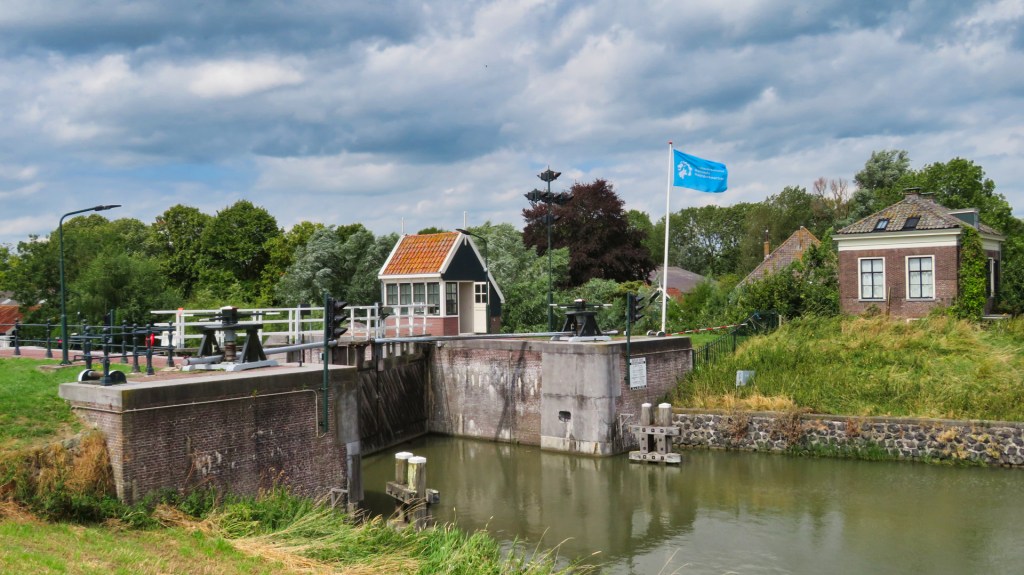 Al snel bereik ik de Zeesluis van Edam, waar ik een indrukwekkend monument passeer, dat drie politieagenten herdenkt, die in 1998 hun leven lieten bij een tragisch ongeval.
