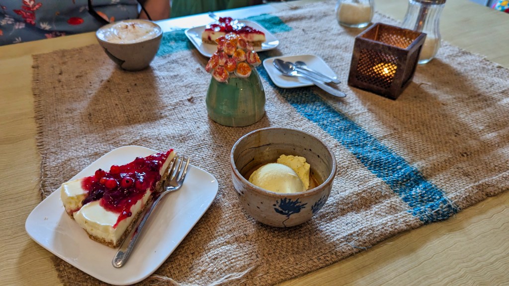 Bij Het Koetshuis kies ik uit de vitrine een heerlijke zelfgemaakte monchoutaart en bestel een koffie vienna, met slagroom natuurlijk. Ik neem plaats aan een houten tafeltje met kleurrijke kussens. De brasserie bevindt zich in een historisch pand met Jugendstil elementen. Vroeger was het de plek waar paarden werden verzorgd en koetsen werden gestald. Nu is het een rustige en gezellige plek. Bij mooi weer kun je ontspannen in de tuin. Of je kunt binnen een potje schaken.