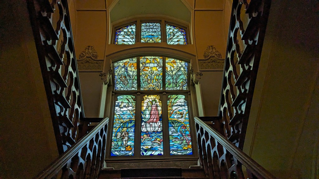 Ik word verwelkomd door een vriendelijke vrijwilligster, die me uitlegt dat ik eerst het art-nouveau museum kan bezoeken. Wat opvalt, is dat je gewoon op de meubels mag zitten en in de kastjes kunt kijken.