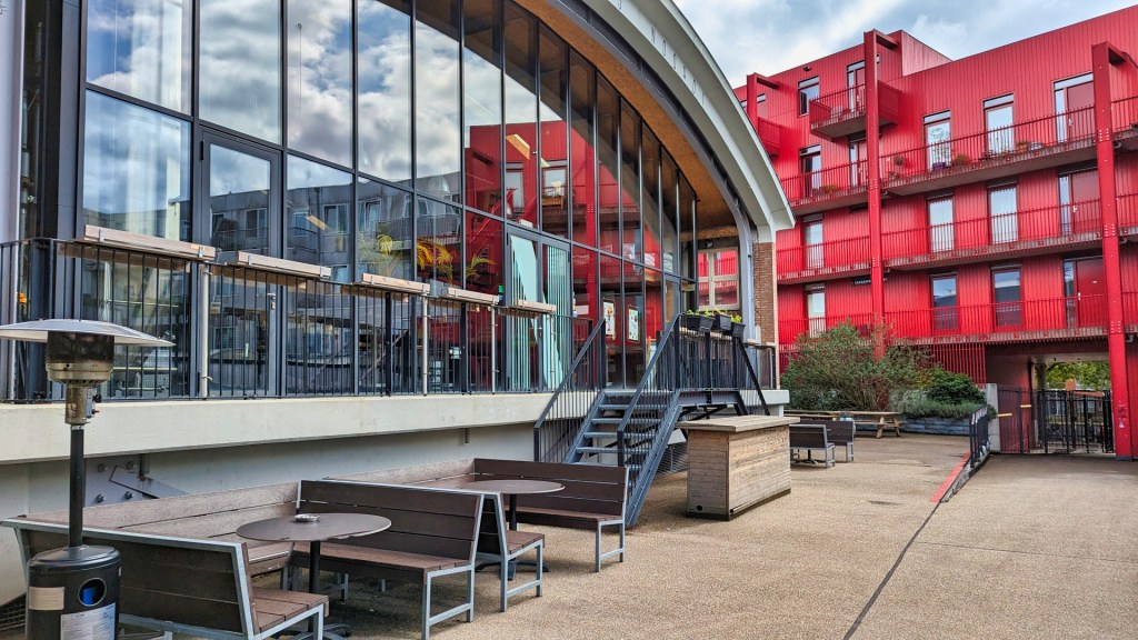 Het Industriegebouw, dat ik vervolgens passeer, is een iconisch bedrijfsverzamelgebouw van de architect Huig Maaskant uit de wederopbouwperiode in Rotterdam. In dit gebouw zitten meer dan 200 bedrijven, waaronder de lunchbar By Jarmusch.