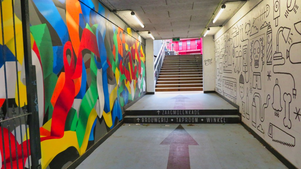 Ik wandel door de trendy Zwaanshals met originele winkels en galerieën. Via een passage kom ik bij een eigen bierbrouwerij, Brouwerij Noordt, gevestigd in een oude brandweergarage.