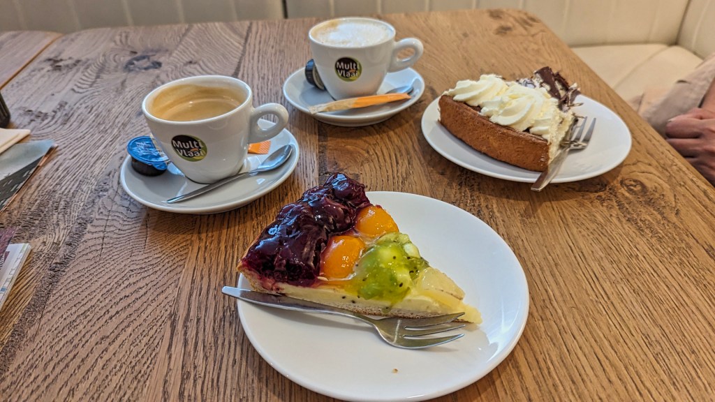 Ik wandel verder naar de Meent, een gezellige straat vol winkels en restaurants. Bij Multivlaai besluit ik neer te strijken voor een cappuccino en een stuk rijstevlaai, een perfecte bodem voor de rest van mijn stadsavontuur.