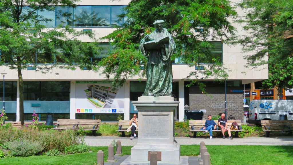 Vanaf daar loop ik verder de Oppert door en zie ik de prachtige Laurenskerk. Het is interessant om te weten dat hier vlakbij de filosoof Erasmus werd geboren. Naast de kerk staat zijn standbeeld en het groen eromheen is schitterend aangelegd. Mensen genieten op bankjes, terwijl anderen op een kussentje aan het mediteren zijn.