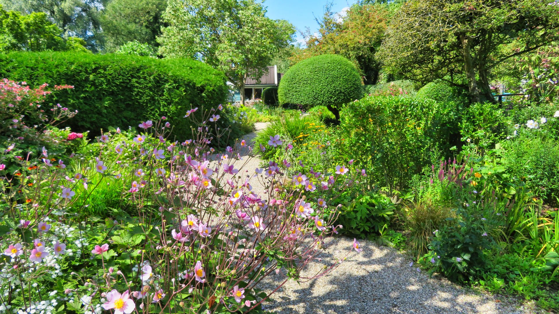 Vlakbij Fort Ossenmarkt ligt de Theetuin NOOT. Ik wandel even door de tuin, die paars kleurt door een zee van paarse herfstanemonen.