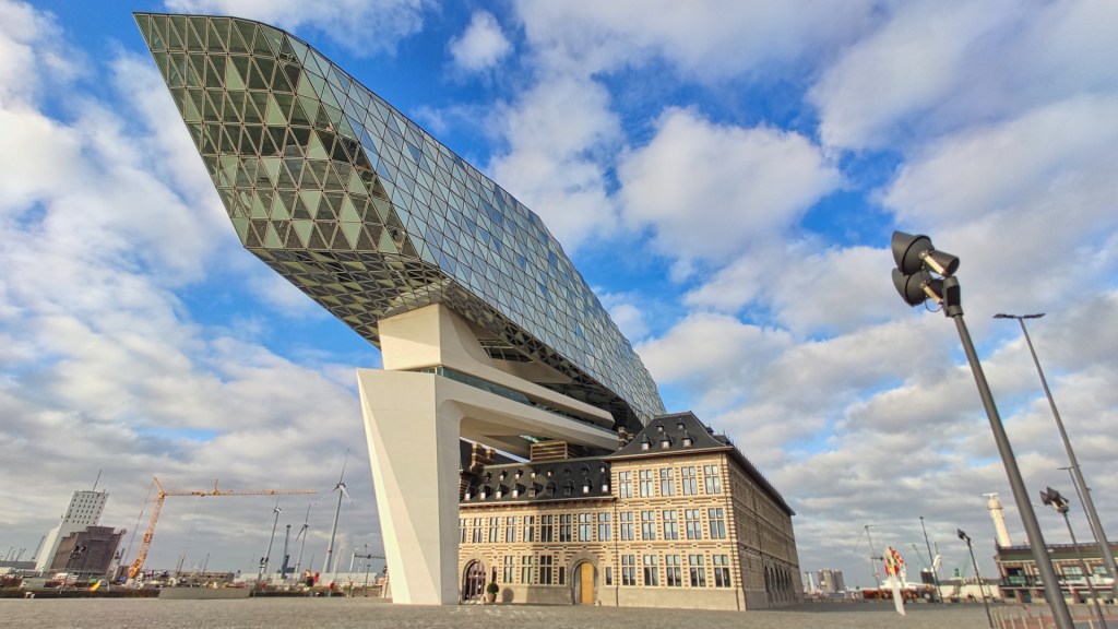 Vervolgens kom ik langs het Antwerpse Havenhuis, een architectonisch hoogstandje ontworpen door Zaha Hadid. Het gebouw herbergt sinds 2016 vijfhonderd medewerkers van het Havenbedrijf Antwerpen. De samensmelting van de oude brandweerkazerne met moderne nieuwbouw vormt een eerbetoon aan de geschiedenis van de haven.