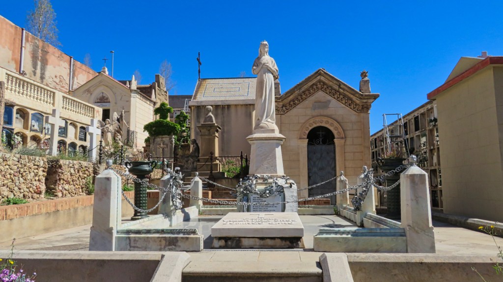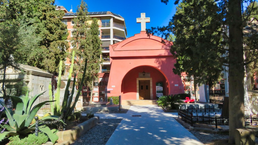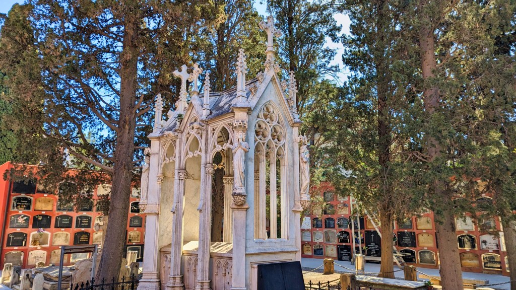 Tussen de luxe appartementengebouwen kom ik bij de 100 jaar oude begraafplaats van Sarrià. Het is een aparte plek voor een laatste rustplaats zo midden in een woonwijk, hoewel de begraafplaats er eerder was dan de appartementen. Het is een ommuurd geheel en het grootste gedeelte bestaat uit muren waarin de kisten worden geplaatst. De begraafplaats van Sarrià heeft meer dan 2000 graven. Er heerst een serene rust op deze plek en afgezien van een dame van de groenvoorziening, ben ik op dat moment de enige bezoeker.
