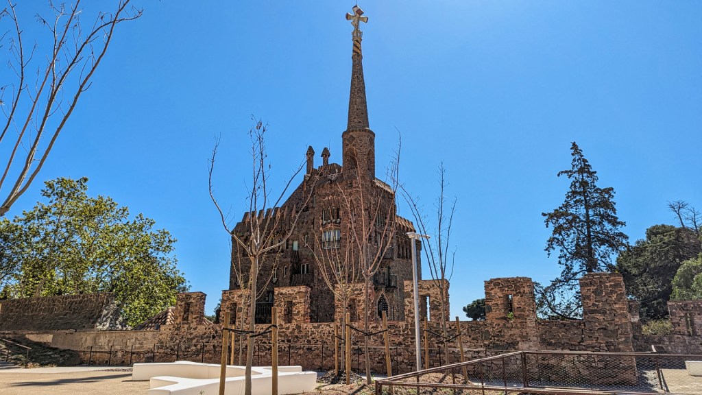 Tussen omheinde villa’s vind ik een relatief onbekend werk van de architect Antoni Gaudí. Torre Bellesguard is ontworpen door Antoni Gaudí tussen 1900 en 1909. Gaudí bouwde dit gebouw met een mix van Art Nouveau en gotische stijl en noemde het Bellesguard, dat verwijst naar het panoramische uitzicht over Barcelona. Hij reconstrueerde ook de ruïnes van een middeleeuws kasteel dat nu deel uitmaakt van de residentie. Ik sla een bezoek aan Gaudí’s villa even over en maak nog wat foto’s van de toren.