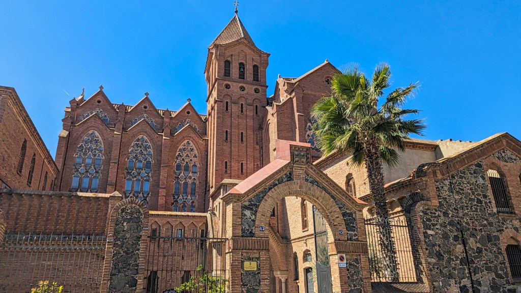 Ik passeer het fraaie rijtje huizen en kom bij de ingang van het terrein van Collegi Sant Ignasi. Voor het terrein zitten veel jongeren op de stoep. Ik wandel het schoolterrein op en word al snel staande gehouden door een strenge beveiliger. Ik begrijp zijn gebaar en neem snel een foto van de school. Het hoofdgebouw, een creatie van Joan Martorell i Montells, is opgetrokken in neogotische stijl met twee torens, gevels van gebakken baksteen en ramen met spitsbogen.