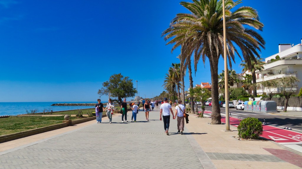 Wandelen over de boulevard van Sitges
