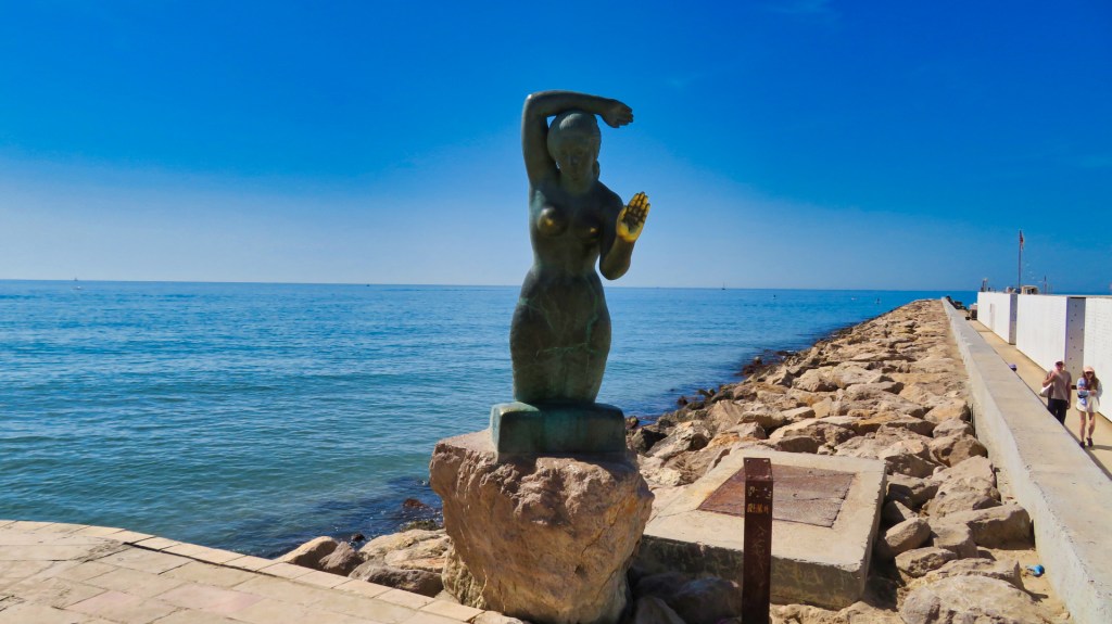 Vanaf het station in Sitges wandel ik door de smalle straatjes met boetiekjes en barretjes. Het toeristenseizoen is nog niet gestart. Het is nog betrekkelijk rustig.