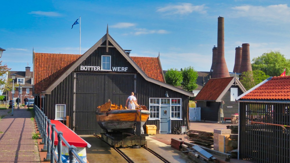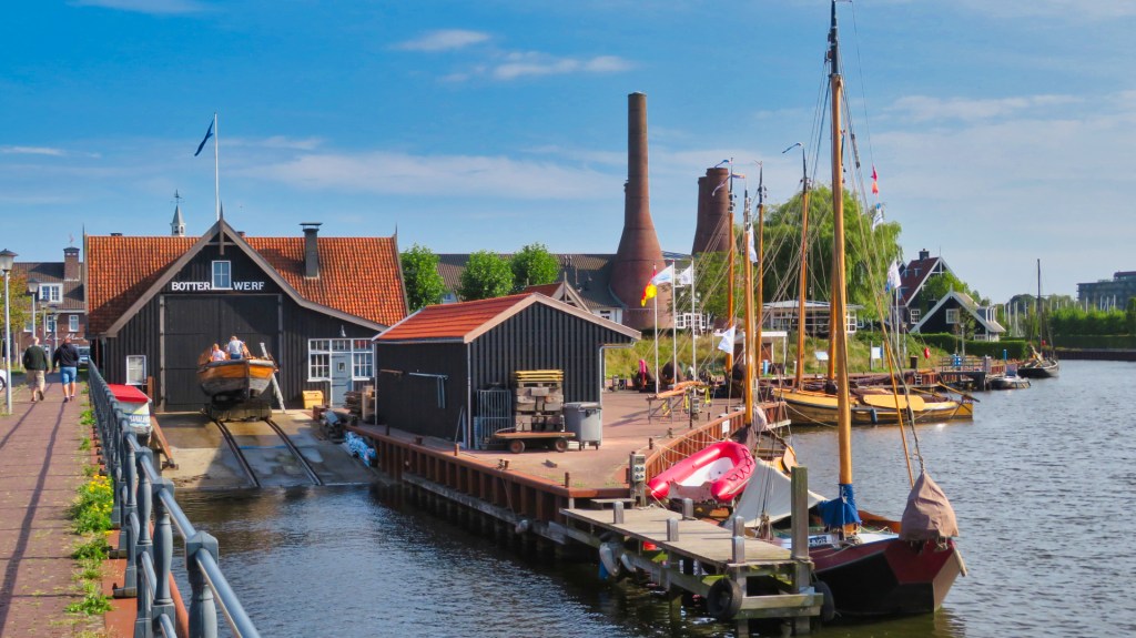 Ik wandel verder door het Nautisch Kwartier. Aan de oude haven van Huizen is een Zuiderzeedorp nagebouwd. Het doet me denken aan de Zaanse huisjes in Zaandam. Ik zie de oude kalkovens en de botterhaven. De meeste gebouwen horen nu bij Fletcher Hotels.