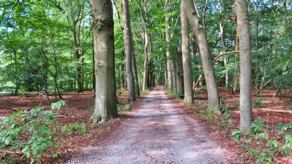 Ik wandel onder slanke dennen en robuuste beuken met parasolachtige bladerdaken. Na een lange wandeling door het bos kom ik bij Landgoed ’t Graeveveldt. Hier bevindt zich de vergaderlocatie “Vergaderen tussen de bomen”. Ik wandel door de lanen van het landgoed en verlaat het via het statige toegangshek.
