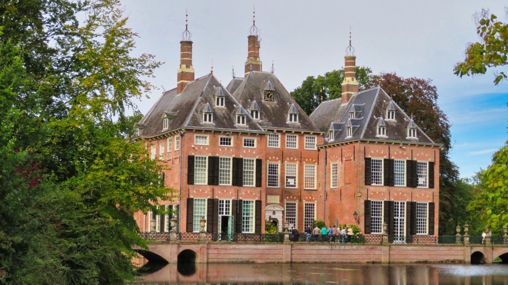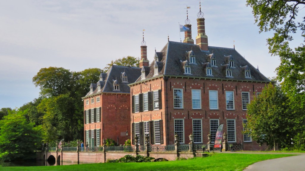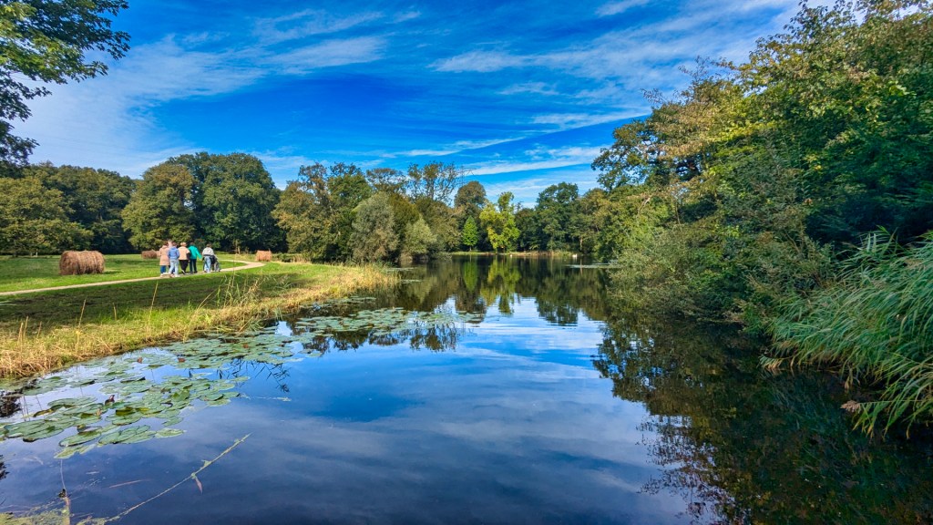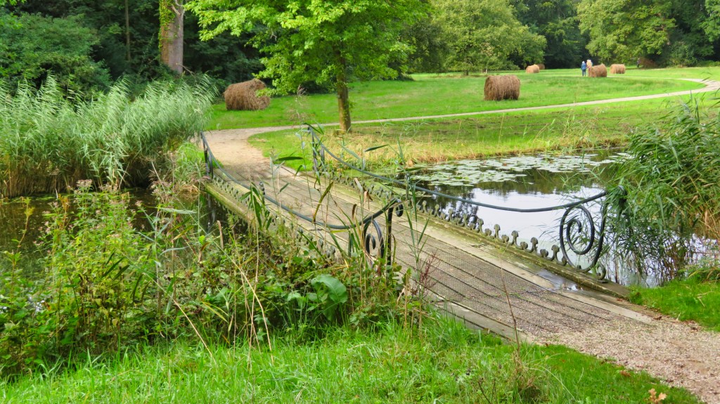 Ik wandel verder over de slingerpaden van landschapsarchitect Zocher. De paden zijn omringd door monumentale bomen, die al de eerste tekenen van de herfst laten zien. Op het grasveld liggen rollen vers gemaaid gras, klaar om opgehaald te worden. Terwijl ik rond het kasteel loop, maak ik nog wat kiekjes van het prachtige kasteel.