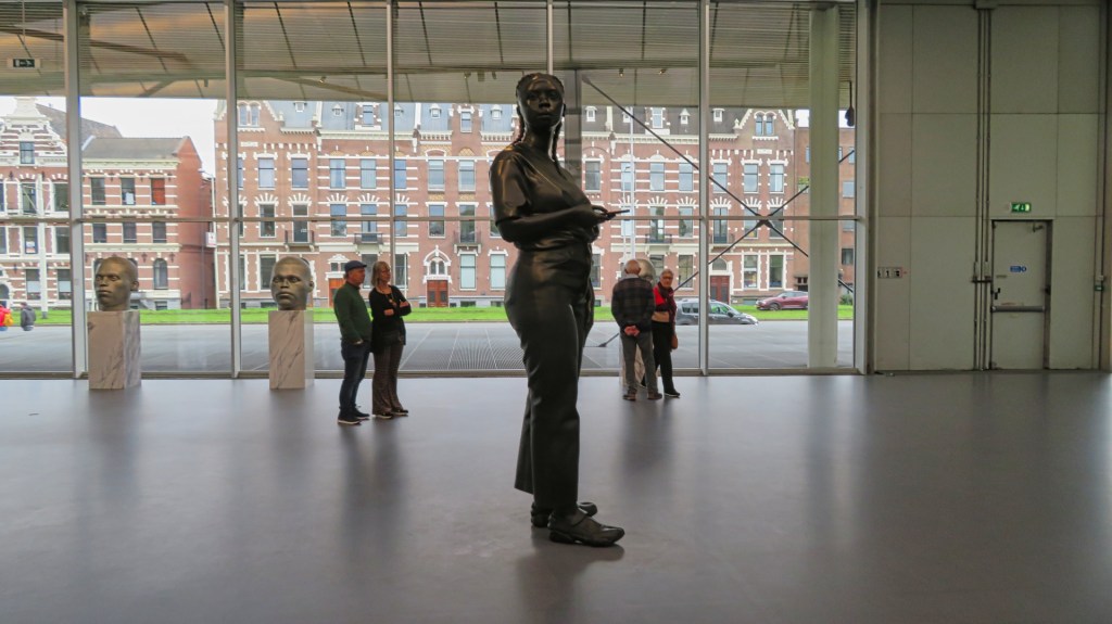 Ik scan mijn Museumkaart en volg de pijlen naar de tentoonstelling. Binnen, in de grote hal, staan enorme bronzen reuze beelden. De hoge ruimte zorgt ervoor dat de beelden goed tot hun recht komen.