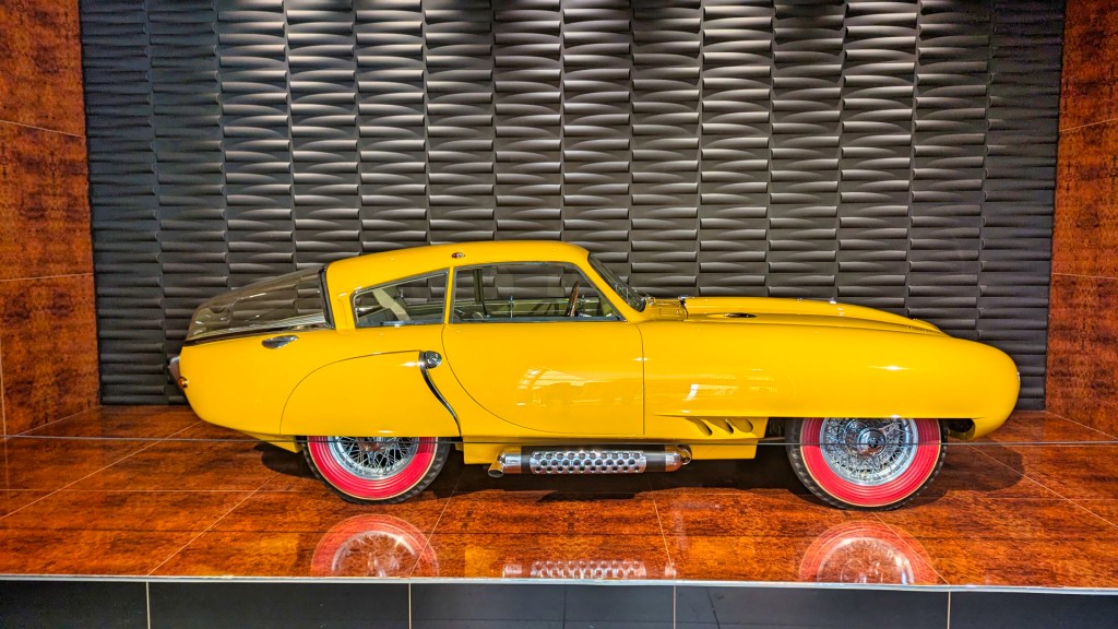 Daarnaast zie ik de Aston Martin DB5 uit de James Bond film Goldfinger. Nederlandse modellen, zoals de Witkar, de eerste elektrische auto, vind ik ook bijzonder. Van een rondleider begrijp ik dat deze deelauto de laatste aanwinst is van het museum.