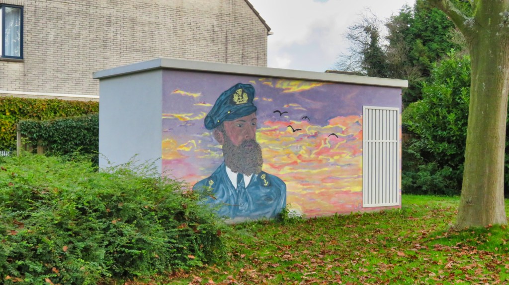 Ook bij het Van Dulmplein kom ik een muurschildering tegen van een kaptein. Deze is ter ere van Jan van Dulm, een Nederlandse marineofficier en onderzeebootcommandant tijdens de Tweede Wereldoorlog.