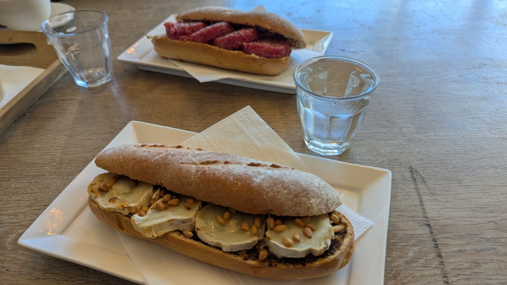 Ik besluit een straat erachter te nemen en wandel tussen de woonblokken door en langs de ontworpen binnentuinen. Vanaf een muurtje staart een grote oranje Siberische kat me aan. Ze wil graag geaaid worden, maar zit zo hoog dat ik het niet red. Ik kom bij de KNSM-laan en krijg trek. Ik stap binnen bij Bakkerswinkel Neeltje en schuif aan bij één van de twee tafels in de kleine bakkerij. Het is een komen en gaan van locals. Ik bestel een cappuccino en broodje ossenworst bij de balie en al snel staat het voor me. Bakkerij Neeltje zit hier al sinds 1993 en verkoopt veel producten die zijn geïnspireerd door Nieuw-Zeelandse recepten.