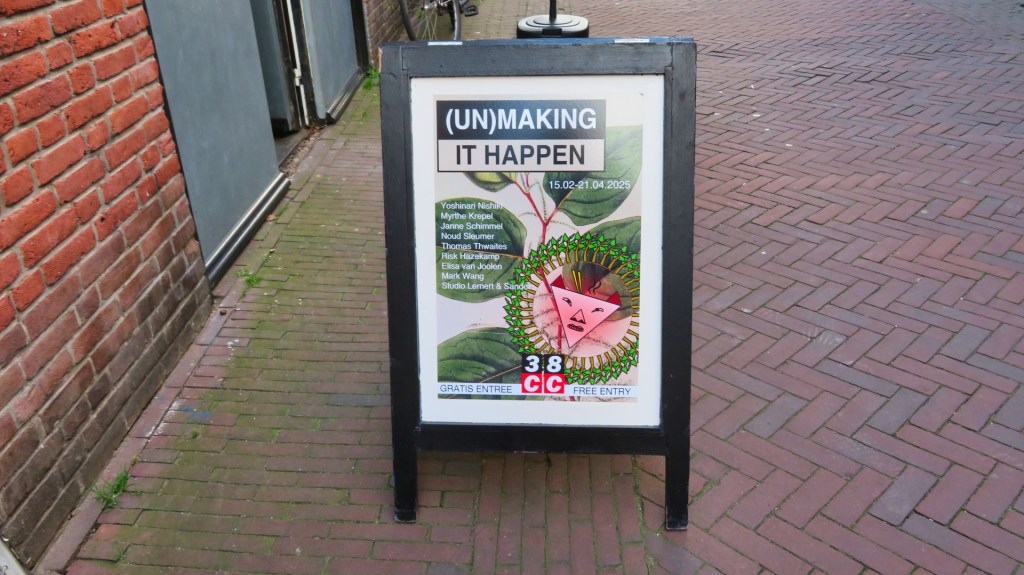 Ik breng ook een bezoek aan Expositieruimte 38CC. Dit is een ruimte die hedendaagse kunst presenteert. Het ondersteunt kunstenaars bij de ontwikkeling van nieuw werk. Jaarlijks zijn er vijf tentoonstellingen te zien, met (inter)nationale kunstenaars. Op het moment van mijn bezoek is er de tentoonstelling (un)making it happen. Het werk van de Japanse kunstenaar Yoshinari Nishiki staat daarin centraal. Zijn werk roept de vraag op: Wat als we stoppen met het eindeloos produceren van meer duurzame spullen? Waarom maken we ze überhaupt?