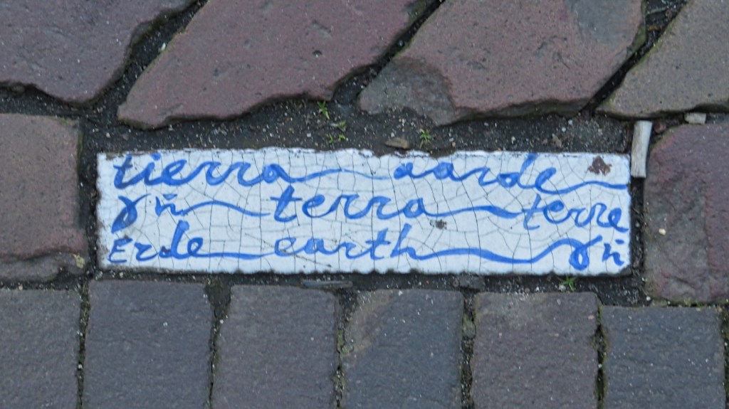 Mijn wandeling gaat verder. In de Papenstraat zie ik de Keramieken Kaart. Het is een keramische en mozaïekkaart van Delft uit de 17e eeuw. Het kunstwerk is gemaakt onder leiding van Nan Deardorff McClain en Colja de Roo samen met honderden vrijwilligers. Het bevat gebouwen zoals het Stadhuis, de Nieuwe Kerk en het Sint-Agathaklooster. Er zijn kleine grapjes verwerkt in het ontwerp.