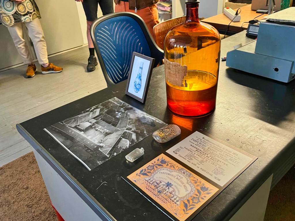 Tijdens Open Monumentendag vorig jaar deed ik mee aan een Vrouwenwandeling langs bijzondere vrouwen in Delft. Eén van de hoogtepunten was een exclusieve rondleiding bij de voormalige parfumeriefabriek aan de Phoenixstraat. De familie die het huis had gekocht, vond restanten van de parfumerie in de tuin, waaronder handgeschilderde flessen. We mochten zelfs ruiken aan een flacon parfum uit die tijd. Het was een bijzonder bezoek, omdat deze plek maar zelden opengesteld wordt.