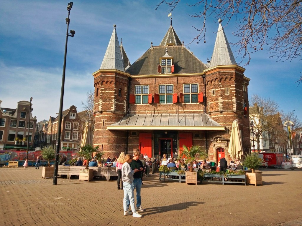 Vervolgens kom ik bij de Nieuwmarkt en de Waag. Dit was oorspronkelijk een stadspoort uit de 15e eeuw. Later werd het omgebouwd tot waaggebouw en gildenhuis. De beroemde schilder Rembrandt legde hier in “De anatomische les van Dr. Nicolaes Tulp” vast, die in dit gebouw plaatsvond.