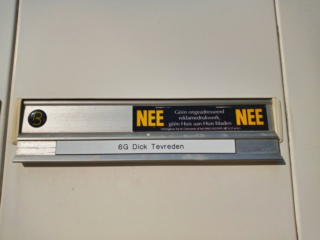 Mijn wandeltocht brengt me over de Houtmankade en de Le Mairekade. Ik loop naar de Spaarndammerstraat. Ik kom langs een huis met een bijzondere bewoner: Dick Tevreden. Dat moet wel een vrolijke buurman zijn. Uiteindelijk keer ik rond 17:00 uur terug bij het buurthuis. Ik sluit de dag af met een frisje op het terras van Ons Genoegen.