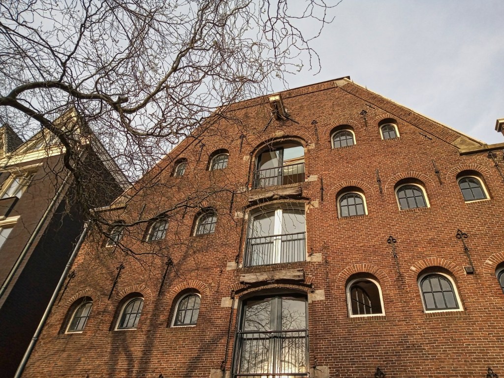 Op de Kromboomsloot bewonder ik een tweelingpakhuis uit 1636, een prachtig voorbeeld van Amsterdamse renaissancearchitectuur.
