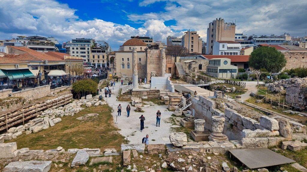 Niet ver van het plein passeer ik de ruïnes van de bibliotheek van keizer Hadrianus. Ook kom ik langs de Romeinse Agora met de prachtig bewaarde Toren der Winden. Deze plek is rustiger dan de hectiek rondom het Monastirakiplein.