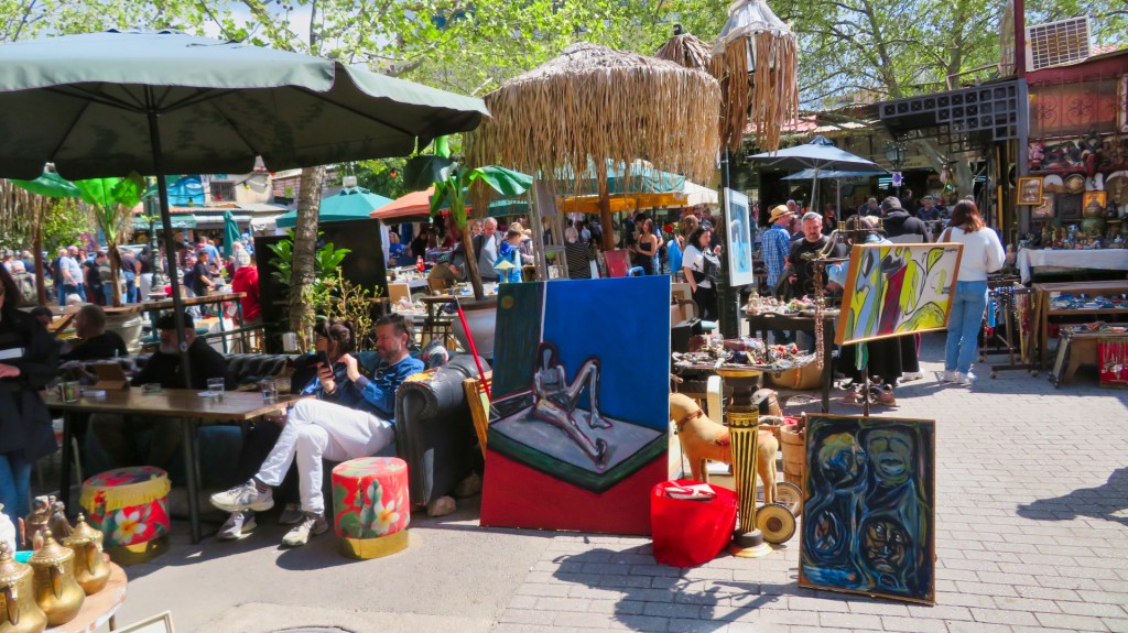 Op het Monastirakiplein is het extra druk. Het is zondag en rondom het plein is een vlooienmarktdag. Ik slenter langs kraampjes met oude boeken, vinyl en snuisterijen.