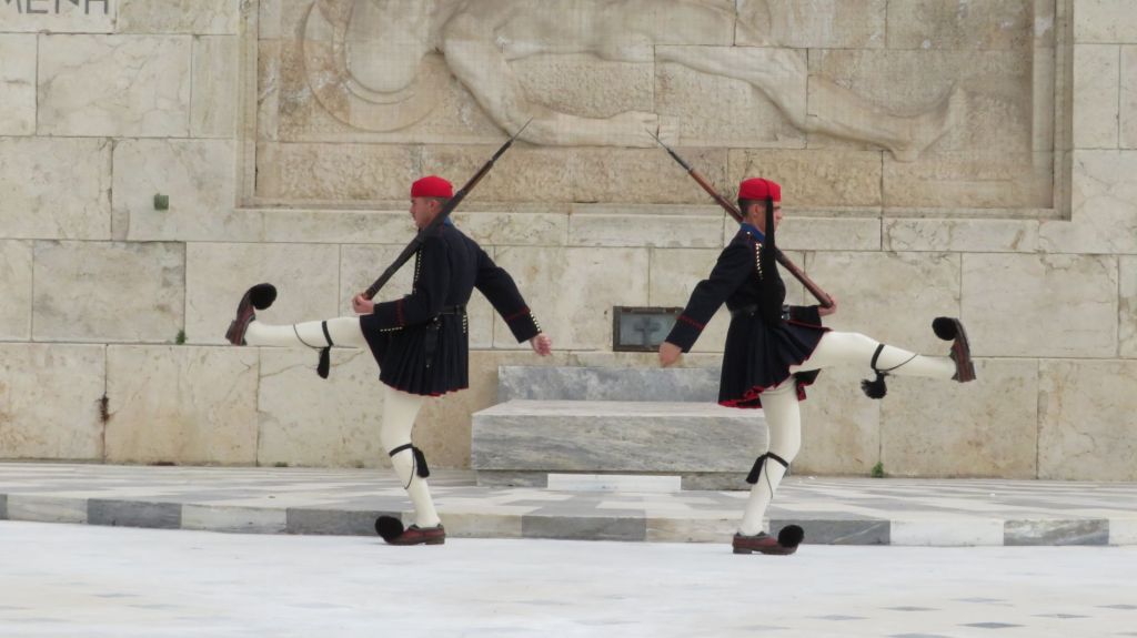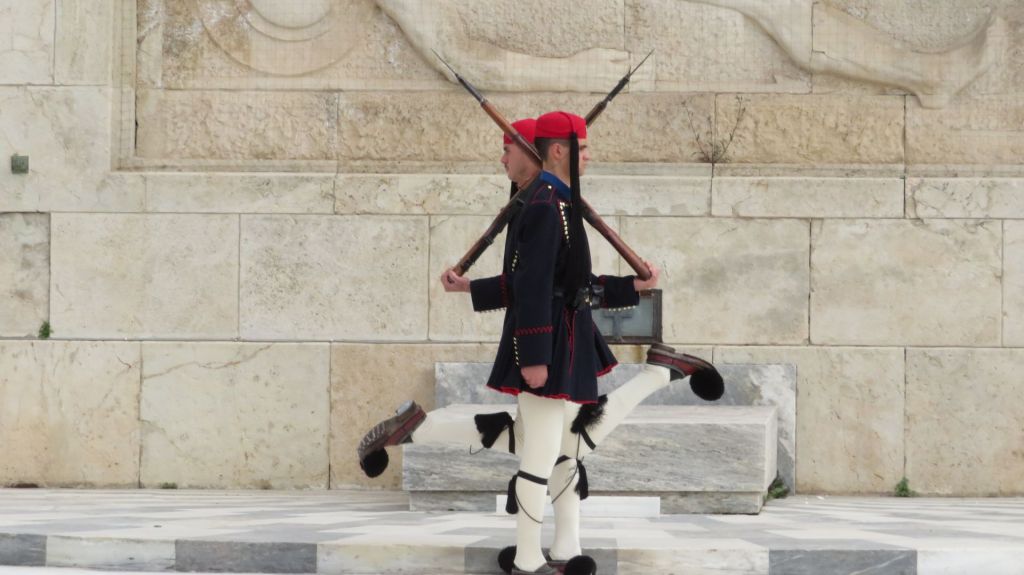 Mijn wandeling begint bij het presidentieel paleis. Daar vindt elk heel uur de beroemde wisseling van de wacht plaats. Eerder deze week was ik te laat. Ik zag alleen het staartje van de ceremonie. Maar deze dag ben ik op tijd. De wachters, met hun opvallende uniformen en pompoms op hun schoenen, marcheren in een langzaam tempo over het plein.