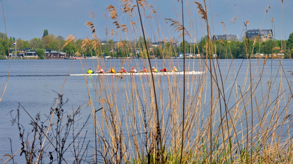 Aan de overkant van de Vliet loop ik het recreatiegebied de Vlietlanden in. Tussen bloeiende koolzaadvelden en fluitenkruid rennen twee jachthonden achter elkaar aan. Hun eigenaar ziet het wat minder vrolijk in, maar ik moet er wel om lachen. Bij de recreatieplas is het opvallend stil. Ik lijk de enige te zijn. Over de rustige plas zie ik in de verte een roeiboot met roeiers in felgekleurde hesjes.