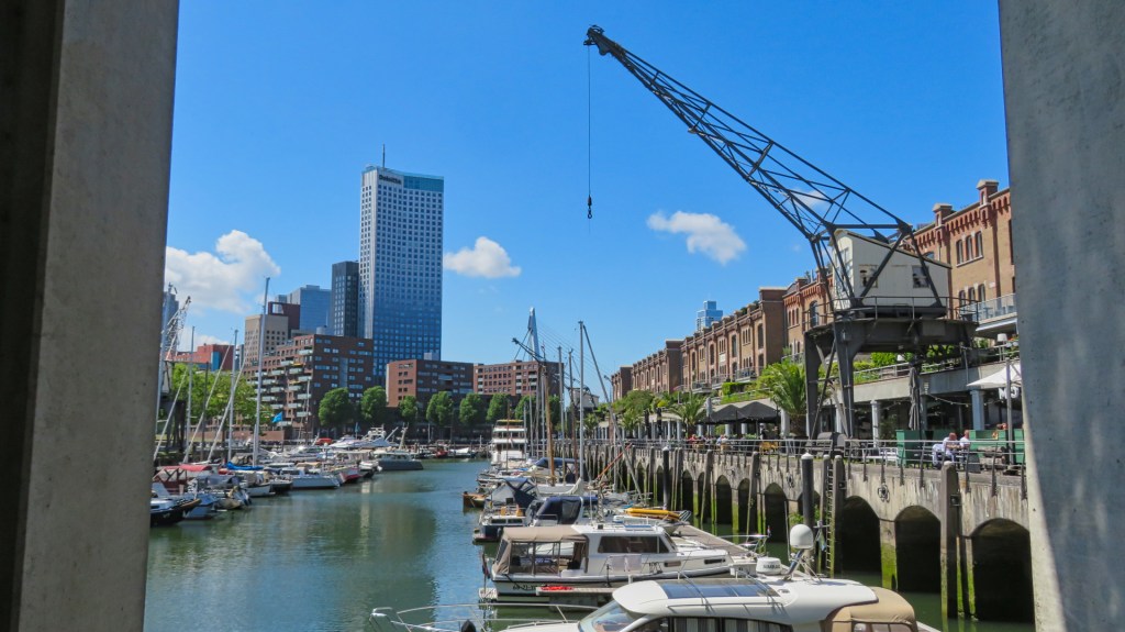 Tijdens een weekendje Rotterdam maak ik een wandeling van 12,5 kilometer. Deze komt uit de Time to Momo-gids: “Noordereiland, Kop van Zuid, Katendrecht & Scheepvaartkwartier”. Een verrassend afwisselende route. De zon schijnt uitbundig en het is zo’n 20 graden. Een heerlijke dag om de Maasstad te verkennen.