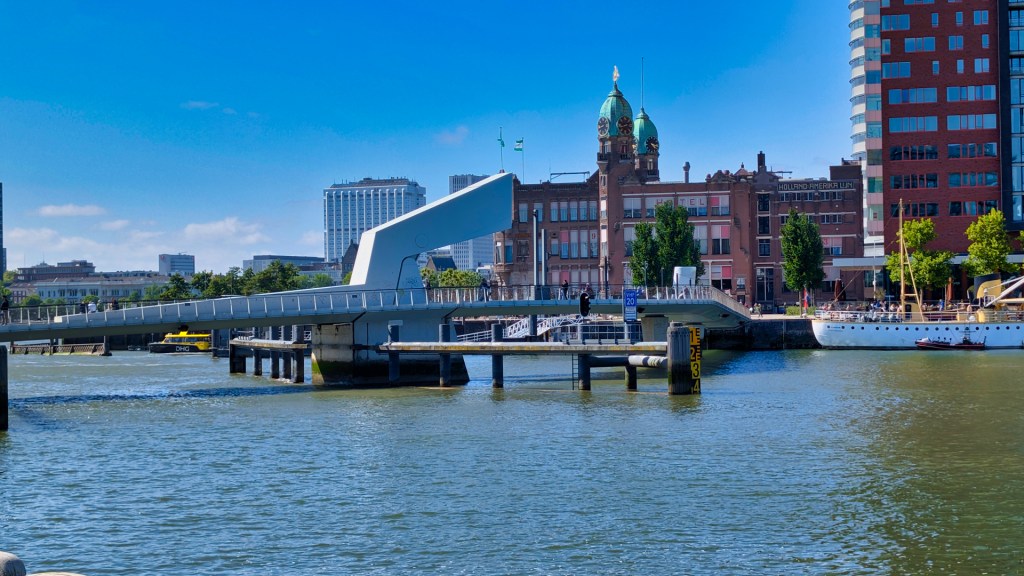 Aan het einde van de brug ligt Hotel New York, het voormalige hoofdkantoor van de Holland-Amerika Lijn. Vanaf hier vertrokken duizenden emigranten naar Amerika.