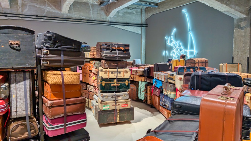 Aan de kade ligt het gloednieuwe museum Fenix. Het is in een monumentale loods uit 1923. Hier vertrokken of arriveerden ooit miljoenen migranten. Het museum presenteert migratie via hedendaagse kunst van meer dan 100 kunstenaars van over de hele wereld. Indrukwekkend vind ik het Kofferdoolhof. Het is een doolhofinstallatie van 2.000 koffers vol reisverhalen, die migratie en vertrek verbeelden. Voor de tentoonstelling konden mensen hun koffer doneren.