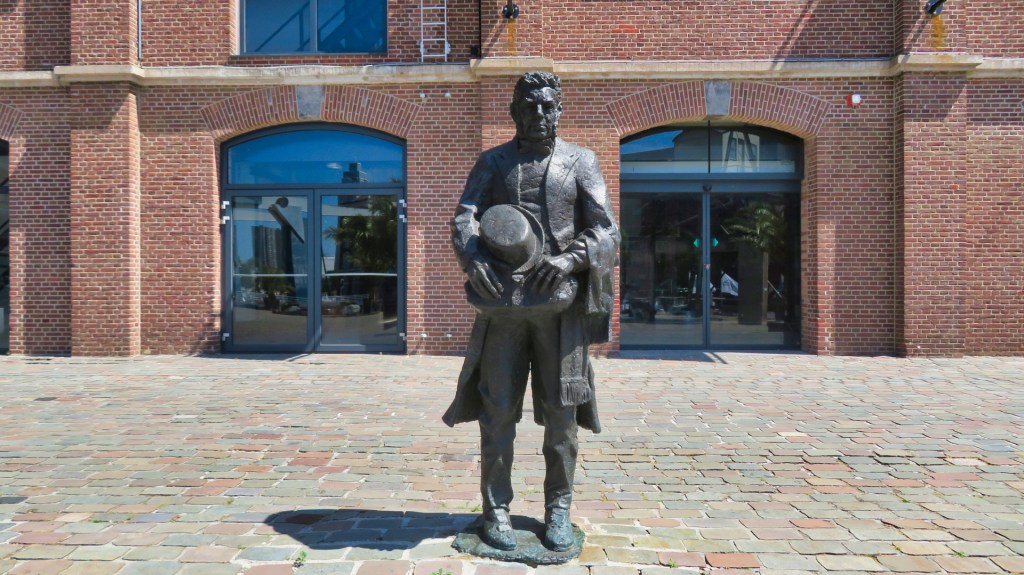 Ik kom bij de Entrepothaven. Daar staat een standbeeld van Lodewijk Pincoffs. Hij was een zakenman en politicus. Hij speelde een grote rol bij de ontwikkeling van de haven. Na een financieel schandaal vluchtte hij naar Amerika. Ik lunch met een heerlijk Surinaams broodje bij de Entrepothaven.