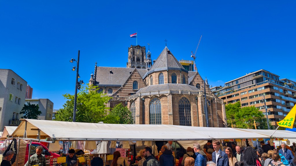 Ik start bij station Rotterdam Blaak. Ik wandel eerst even over de warenmarkt, die hier zaterdags altijd staat. Op de markt bestel ik een haring in stukjes, maar de man achter de kraam kijkt me verbaasd aan. “Die heb ik niet.” Blijkbaar eet je die hier nog steeds uit het vuistje, boven je hoofd.
