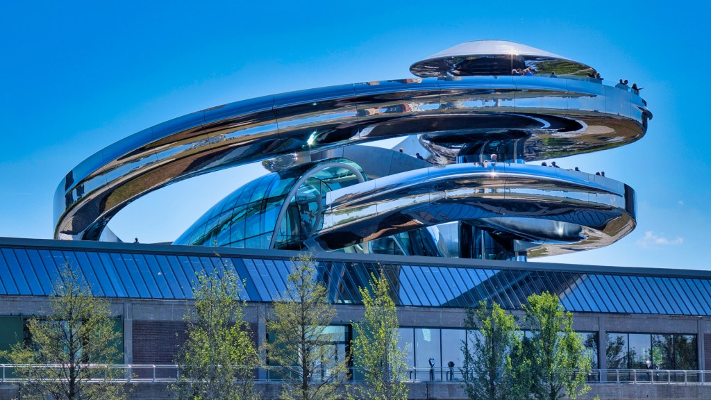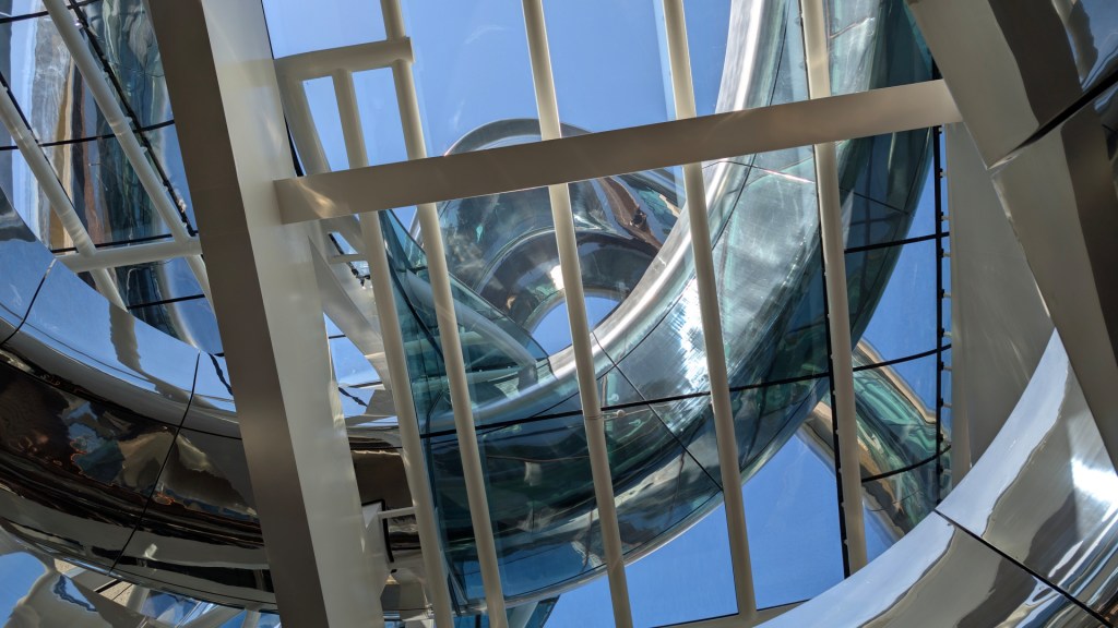 Spectaculair vind ik De Tornado, een dubbele helix-trap op het dak. Als bezoeker loop je als het ware een spiraalvormige reis. Het staat symbool voor de reis van een migrant: bewegen zonder precies te weten waar je uitkomt.