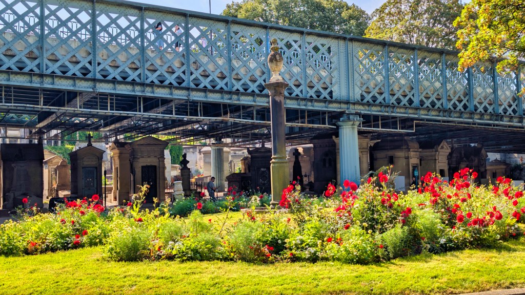 Vanaf hier wandel ik naar het Cimetière de Montmartre, de derde grootste begraafplaats van Parijs. Het ligt op de plek van oude gipsgroeven en heette vroeger Cimetière de la Barrière Blanche. De begraafplaats telt zo’n 20.000 graven en wordt sinds 1888 overspannen door de metalen brug Caulaincourt. Beroemdheden zoals François Truffaut, Jeanne Moreau, Michel Berger, France Gall, Dalida en Emile Zola liggen hier begraven.