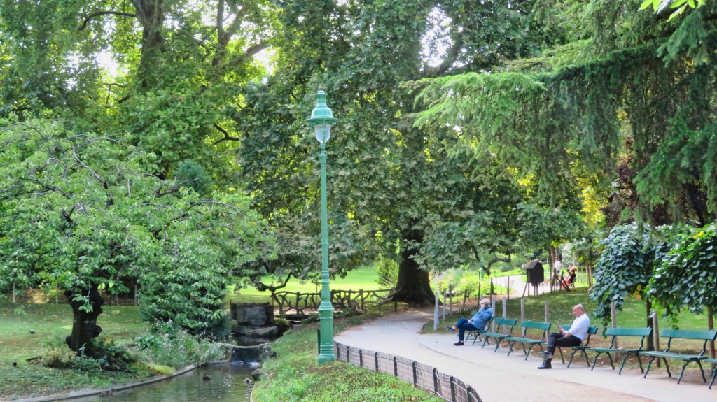 Mijn route voert door het Square des Batignolles, het grootste park van het 17e arrondissement. Het werd in de 19e eeuw op verzoek van Napoleon III aangelegd in de naturalistische Engelse tuinstijl.