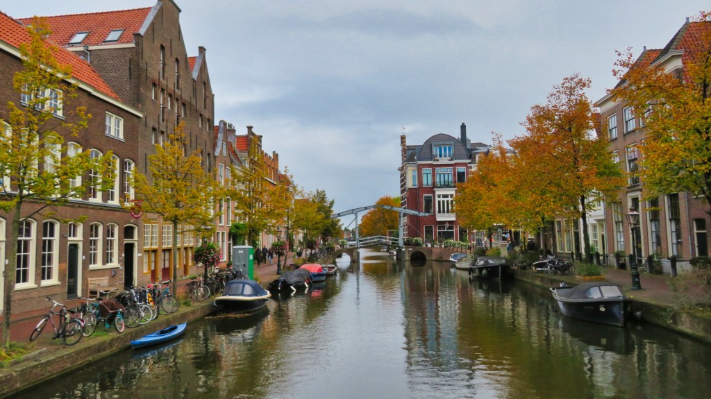 Ik kom in het Ankerpark, dat onderdeel is van het Singelpark van Leiden. Hier zie ik de oude Meelfabriek die wordt omgebouwd tot woningen. De route gaat door café Grutsk, een koffiebar van een Friese eigenaar. Grutsk betekent ‘trots’ in het Fries. Tegenover het café ligt een tuin die is ontworpen door landschapsarchitect Piet Oudolf. De herfst is zichtbaar in de tuin: de lila asters bloeien.