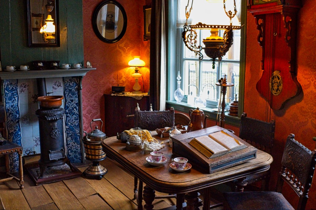 Het topstuk van het museum is het Palmhoutwrak, met een zijden jurk die in het wrak gevonden is. Daarna loop ik naar het openluchtmuseum, waar een nagebouwd vissersdorpje is te zien. In elk huisje is iets te bekijken: een schoenmakerij, een smederij, een kruidenierswinkel. Ook kun je binnenkijken bij de Oudeschildse molen. Het meest indrukwekkend vind ik de jutterij, een verzameling voorwerpen die jutters op het strand hebben gevonden.