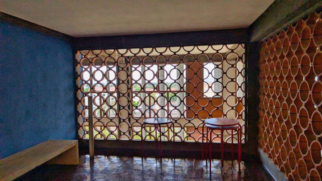 Ik ga naar de 3de verdieping waar een hotel en winkels bevinden. Met een betonnen trap kom ik op de vierde verdieping met bedrijven. Ik wandel door de donkere gangen en ga met de lift naar de 9de verdieping naar het dak waar bepaalde delen toegankelijk zijn voor publiek. Om het uitzicht over de stad te bekijken moet ik op mijn tenen staan om de hoge betonnen reling te kijken. Het begint meer te miezeren en ik besluit om het open dak te verlaten.