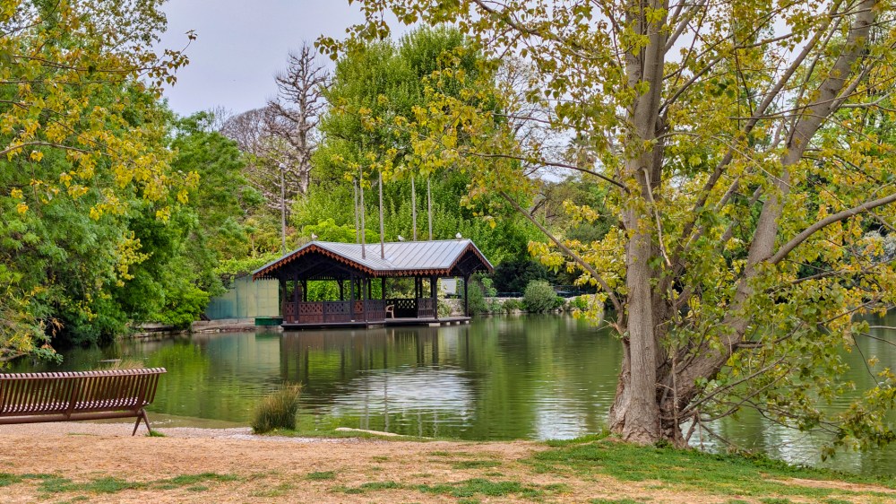 Ik maak een wandeling door het uitgestrekte park en bij de Engelse vijver ga ik even op een bankje zitten. Over de vijver vliegen boerenzwaluwen en op een verhoging in de vijver zit een aalscholver te zonnen. Wilde eenden dobberen op het water en boven mijn hoofd cirkelen meeuwen. Aan de overkant hoor ik een pauw.