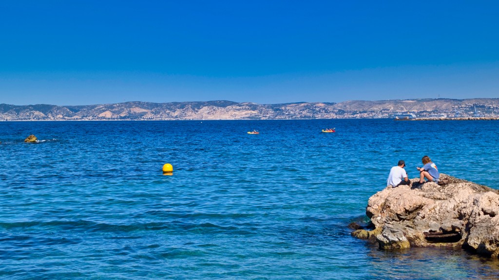 Ik maak een uitstapje naar het rotsstrandje Anse de Malmousque. Deze kleine baaien zijn gevormd door de grillige kust en voelen een stuk rustiger dan de grotere stranden.