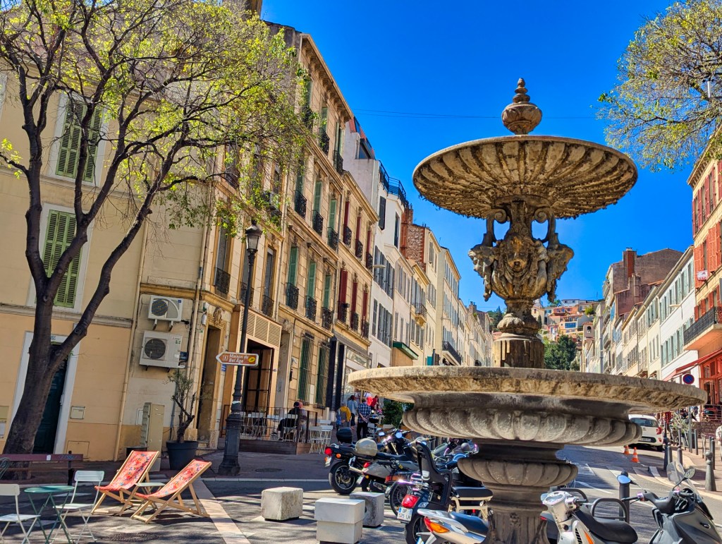 Ik start mijn route met een kleine aanloop vanaf mijn hotel, bij Place Castellane. Het plein met de fontein is onlangs opgeknapt. Waar het eerst een rotonde was, is het nu een prettig voetgangersgebied met bankjes en terrassen.
